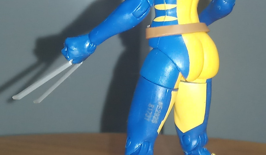 Wolverine trae una cabeza con su mascara, y otra descubierta (o "cabeza de Laura"), y ningún otro accesorio mas. Es una buena figura, tal cual nos tiene acostumbrado Hasbro con los Legends últimamente, aunque se le ve un detalle no muy prolijo en su pierna izquierda (la que vemos de frente a la derecha), amen que las garras de los pies es muy simple perder, se salen si hay un impacto no demasiado grande de dicha parte de la anatomía de la figura.