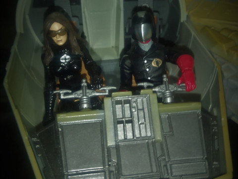 Pero...que hay de otras figuras de la misma escala? Ya que tengo varios GI Joe... y Cobra... me pareció una buena oportunidad para que abordaran la nave. Para tomar una pieza de alta tecnología que ayude a ganar su guerra contra los Joe's, sin duda irían los miembros mas encumbrados. El muy detallista dirá que hay algún que otro milímetro de menos en la nave para cumplir con la escala, pero yo sostengo que les queda genial.