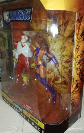 No todas las conseguí nuevas, sino que Man-Bat fue una compra de segunda mano, aunque en excelente estado ya que pertenecía a un coleccionista (comúnmente se utiliza la palabra "loose"); por lo pronto puedo hablar del empaque de tres de las cuatro. Starfire y Adam Strange vienen en una caja, ya que se las vendía como pack. La caja mantiene el estilo de los blister (de los DC Universe), y permite que si uno desea, exhiba las figuras dentro de la misma. En tanto Kyle Rayner viene en un empaque mas caja (comparado con el mencionado anteriormente), de mayor rigidez, pero no demasiado adecuado para exhibir la figura. A diferencia de la del pack (que no muestra nada notable), la caja de Kyle muestra la wave completa en su parte trasera, BAF incluido (si, el BAF es Lobo, y es una excelente oportunidad para aquellos que quieran conseguir una figura del personaje de buena calidad y a un precio decente; de todas formas aquí tienen una review de la versión DC Universe del personaje, que a mi gusto esta mejor lograda que este BAF: https://www.fmzcollector.com/post/review-fin-de-a%C3%B1o-entre-un-rajado-czarniano-un-contenedor-vivo-y-una-mutante-que-nada-la-detiene)
