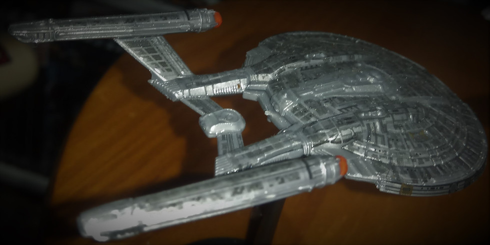 De lógica es la cuestión, pero cuanto mas grande la nave, mejor detalle, por ello es que las Enterprise NCC-1701-D y NCC-1701-E son las que resaltan de la colección, aunque en el ensamblado final la NCC-1701-B y la NX-01 quedaron también muy prolijas. Las mas flojas fueron la NCC-1701, pero dado que en la serie no tenia mayor detalle, tampoco se desmerece el trabajo final. Me percate si después de poner los calcos en la NCC-1701-C, que pintar las pequeñas ventanitas antes hubiera sido ideal (no llegue a pintarlas todas, cosa que si hice con la NCC-1701-E).