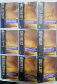 La primera es una colección de los 90 producida por SkyBox (también responsables de las tarjetas Amalgam), la cual en calidad de materiales esta algún escalón por debajo de las de Pepsi, pero tanto las ilustraciones como la información y diseño son muy buenas. Esta colección incompleta fue fruto de un negocio (tipo canje si mal no recuerdo) y es el clásico "forman parte del paquete".